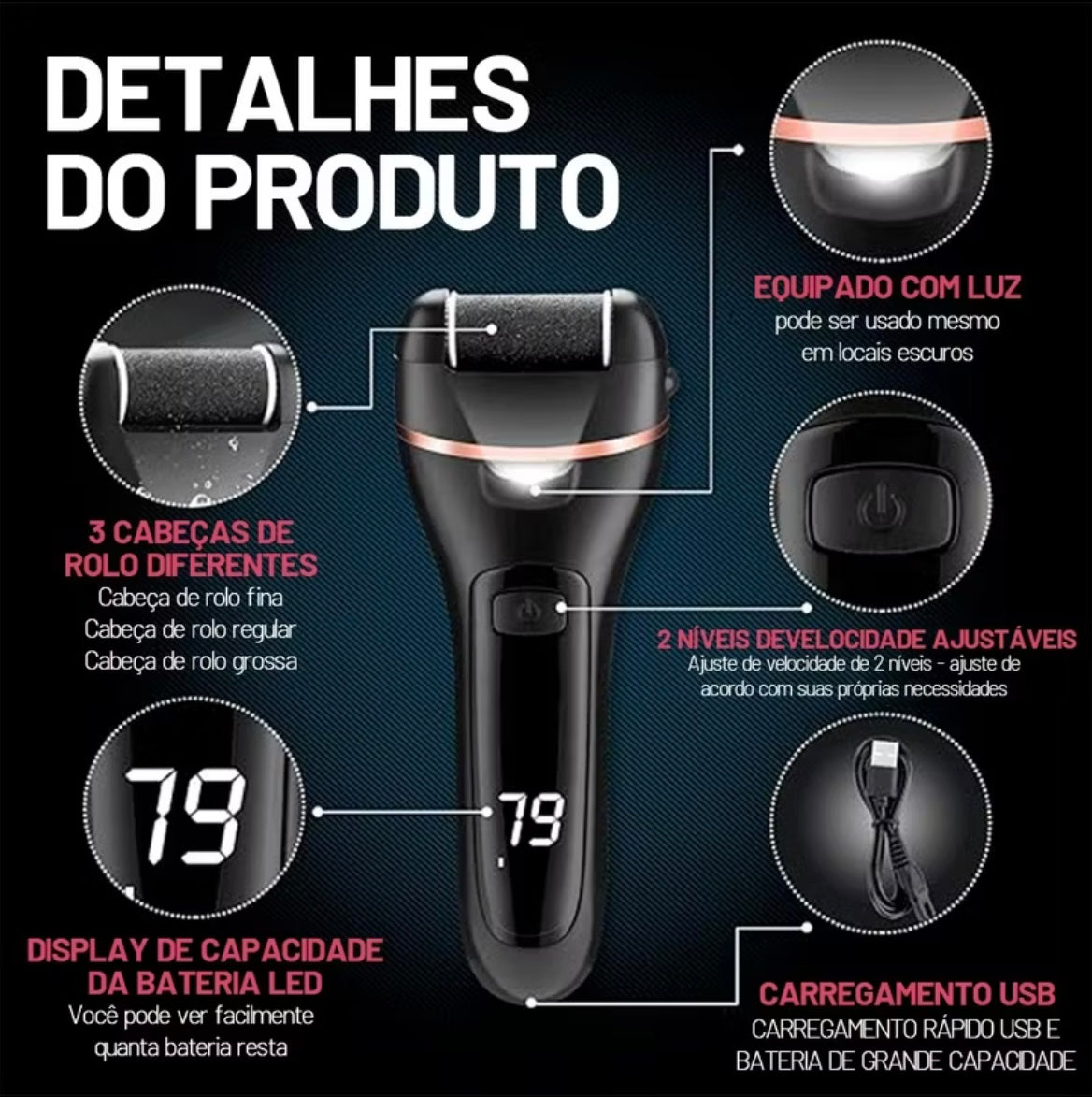 Com o Esfoliante Elétrico Profissional Premium, você elimina o aspecto áspero dos pés e mantém uma rotina de cuidados simples, prática e eficiente.